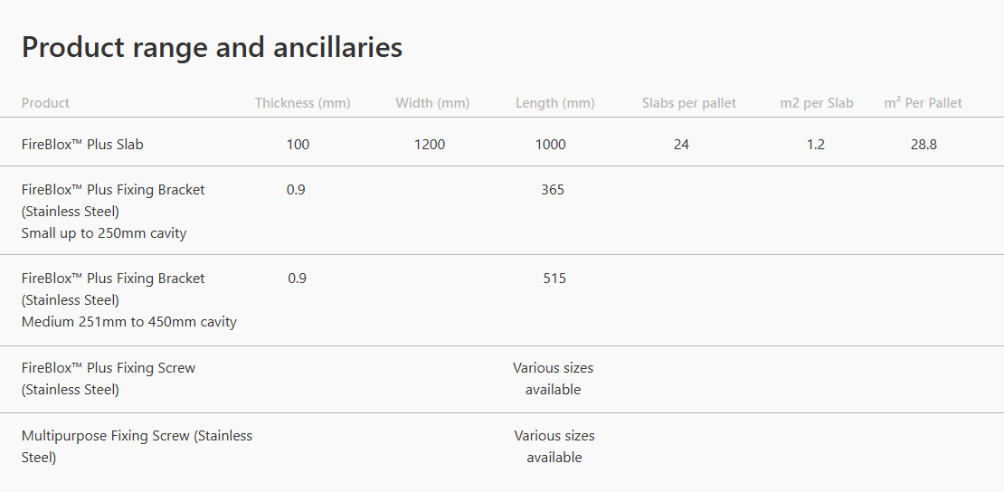 FireBlox™ Plus is supplied in slabs of 1200mm wide x 1000mm long x 100mm deep and should be cut to size on site to suit the cavity width allowing for relevant compression. Joints must be abutted tightly and sealed with 100mm aluminium foil tape.